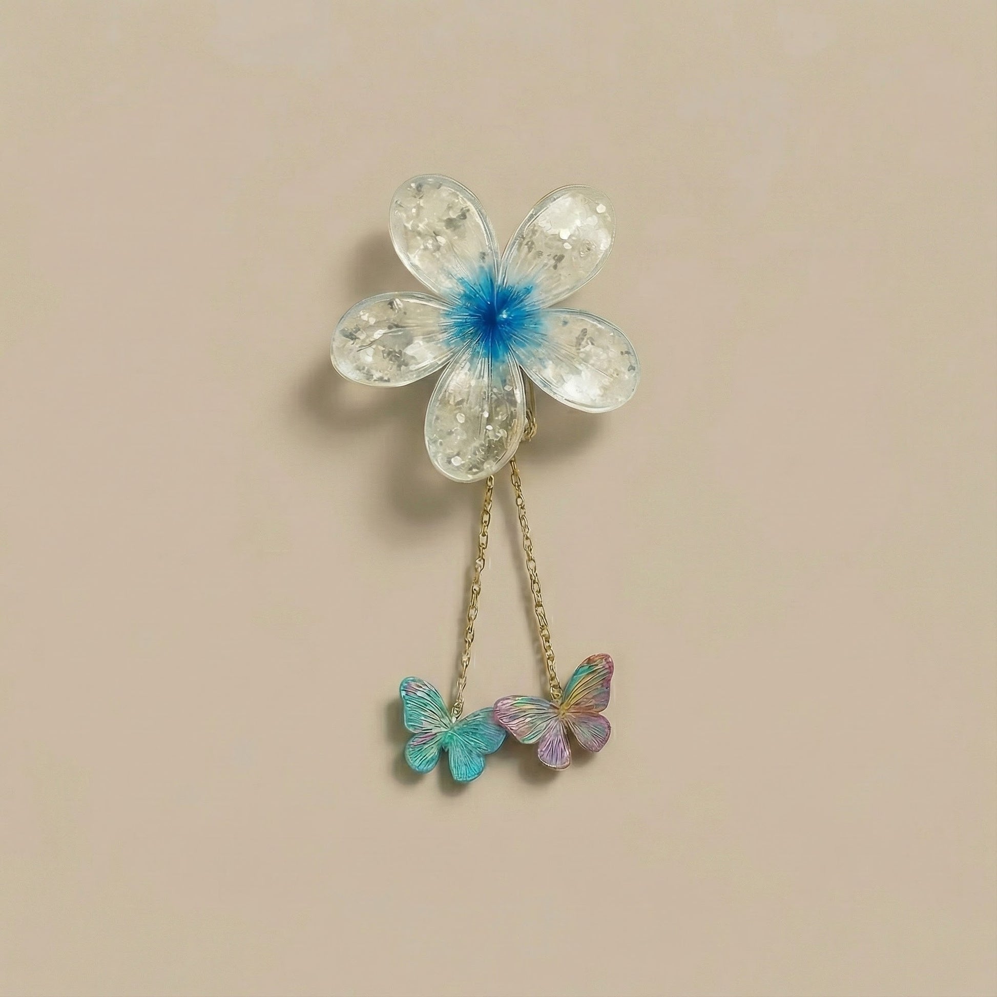 This beautiful Butterfly Flower Hair Clips Set is specially designed for girls who love cute, colorful, and stylish hair accessories. Each clip features a soft glitter flower with a colorful center and two dangling rainbow butterfly charms, giving a very attractive and trendy look.